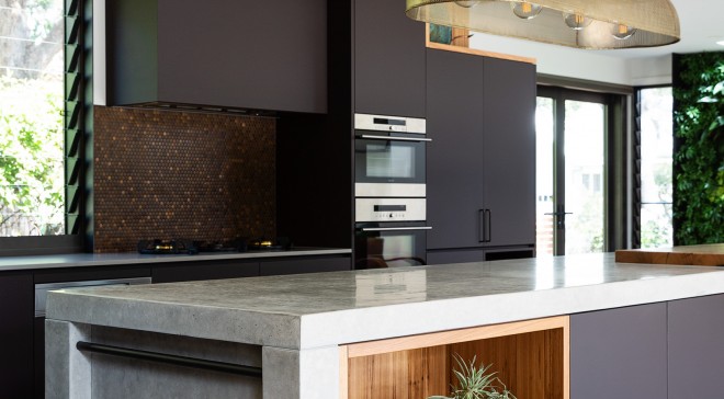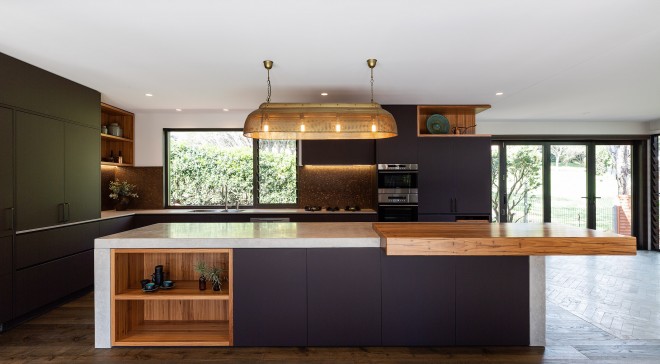 Steve's Joinery has used Fenix NTM for this amazing Gerringong Project. Fenix Nanao Tech Matt panels have been used throughout the home in the kitchen, bathroom and dining room. The colour palette used Cacao Orinoco, Verde Comodoro and Grigio Londra will complete the design mood of serenity and nature.